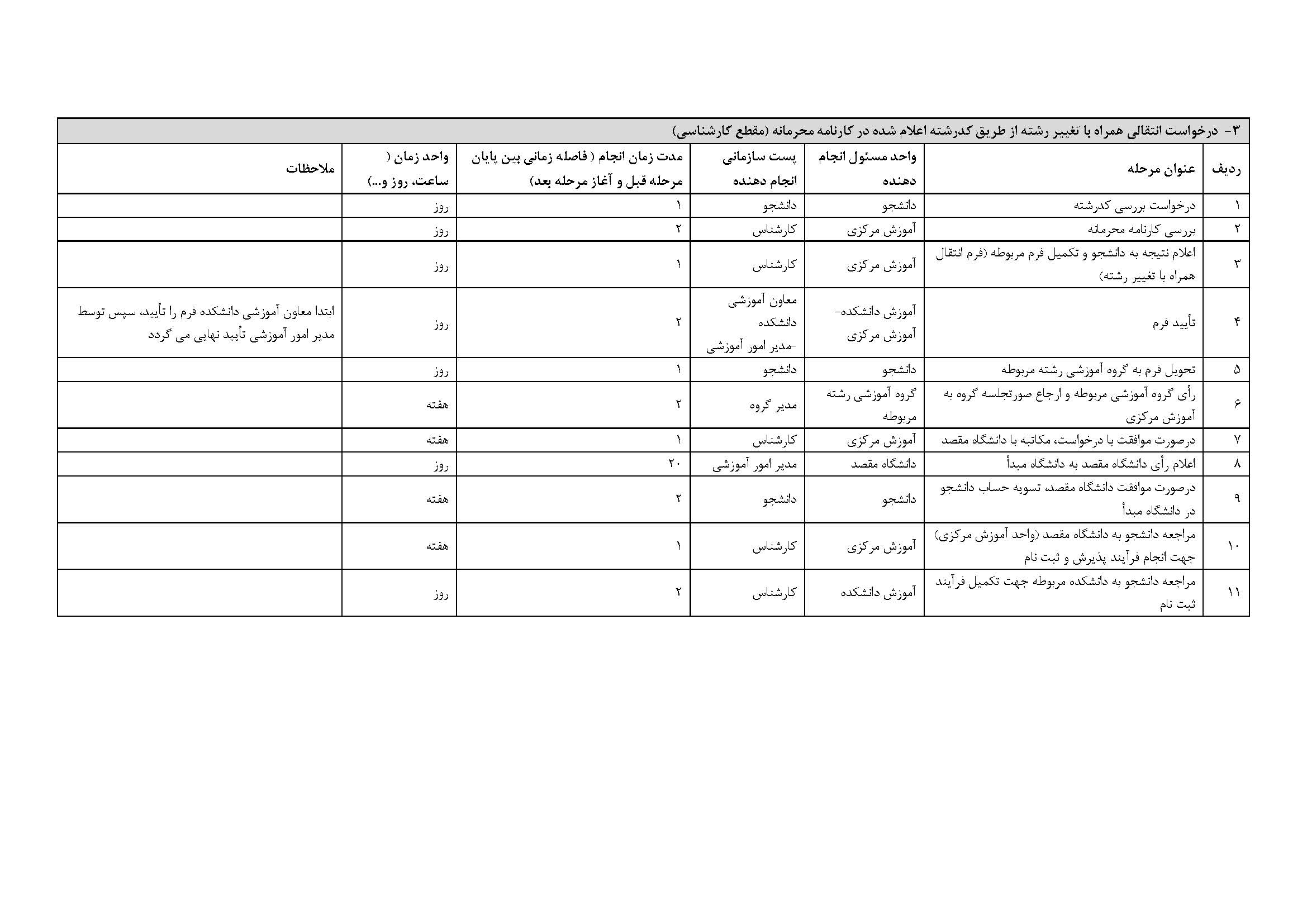 درخواست انتقالی همراه با تغییر رشته از طریق کدرشته اعلام شده در کارنامه محرمانه (مقطع کارشناسی)