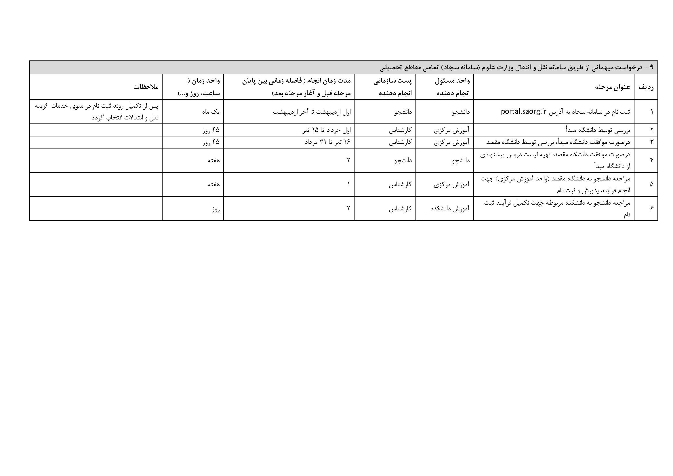 درخواست انتقالی از طریق سامانه نقل و انتقال وزارت علوم (سامانه سجاد)